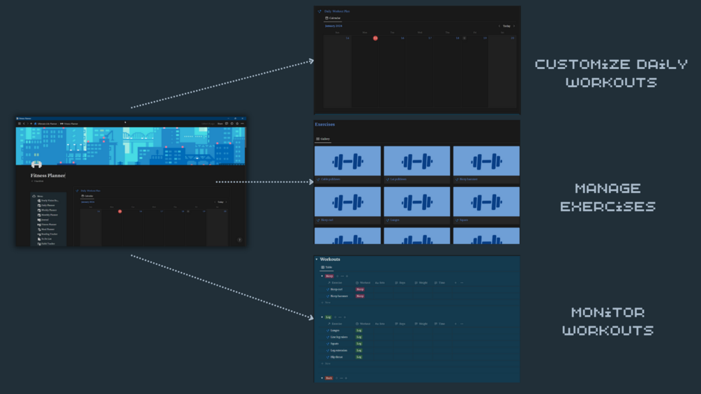 2. Daily, Weekly, Monthly Planners: Navigate your quests with precision through dark-themed planners that bring an element of excitement to your daily grind.